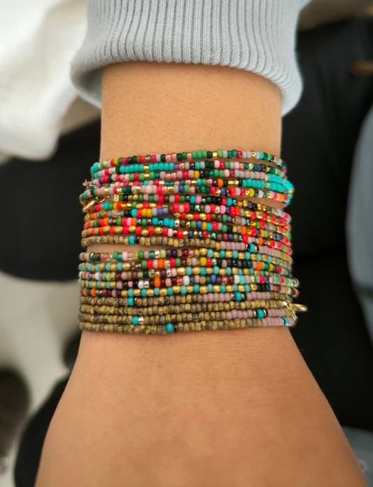 צמיד חרוזים נכרך בטורקיז וירוק בקבוק