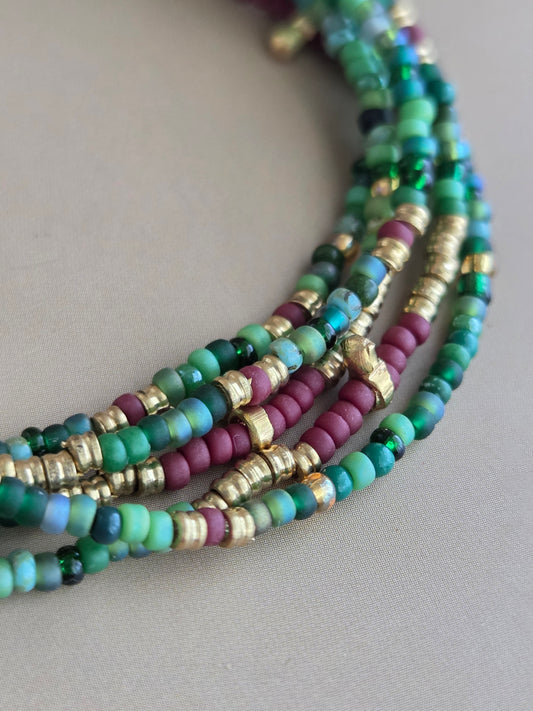 צמיד חרוזים נכרך בזהב שקוף וירוקים