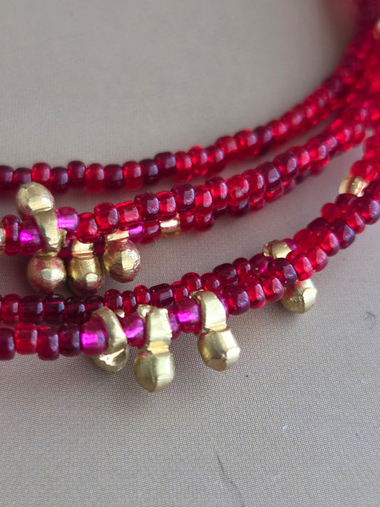 צמיד חרוזים נכרך באדומים שקופים ורוד ובראס