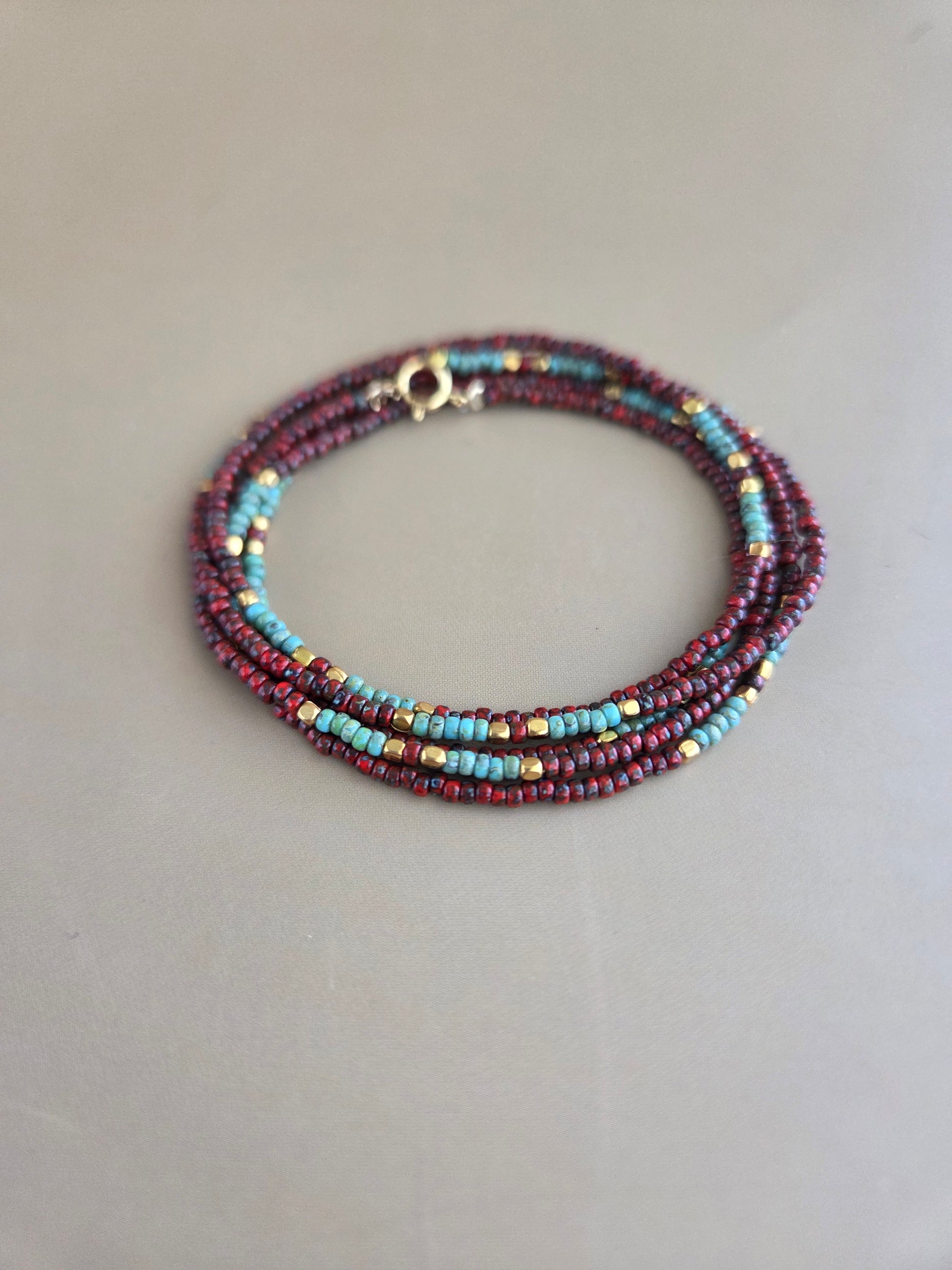 צמיד חרוזים נברך בבורדו מפוספס וטורקיז