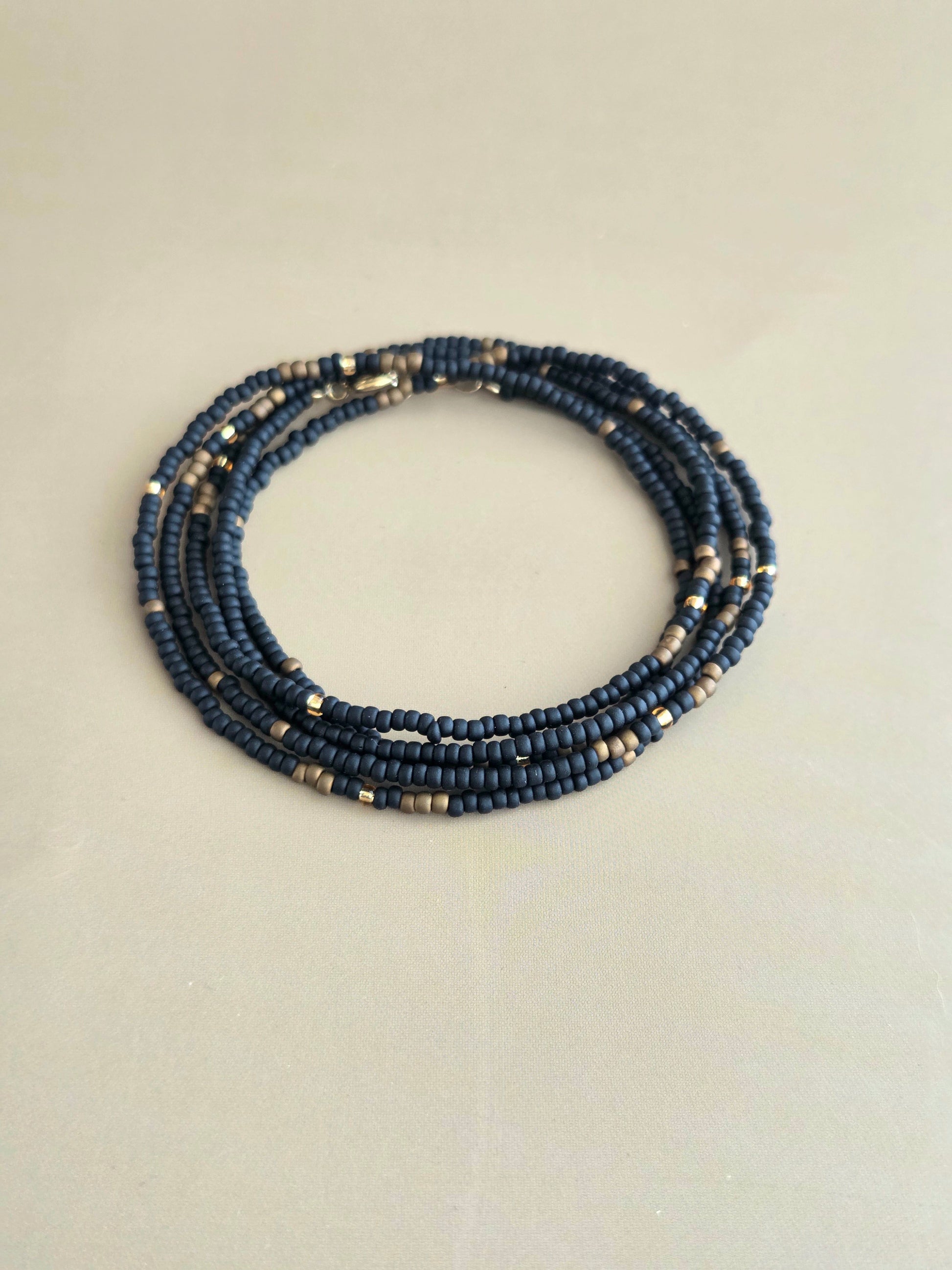 צמיד חרוזים נכרך בשחור מט וברונזה