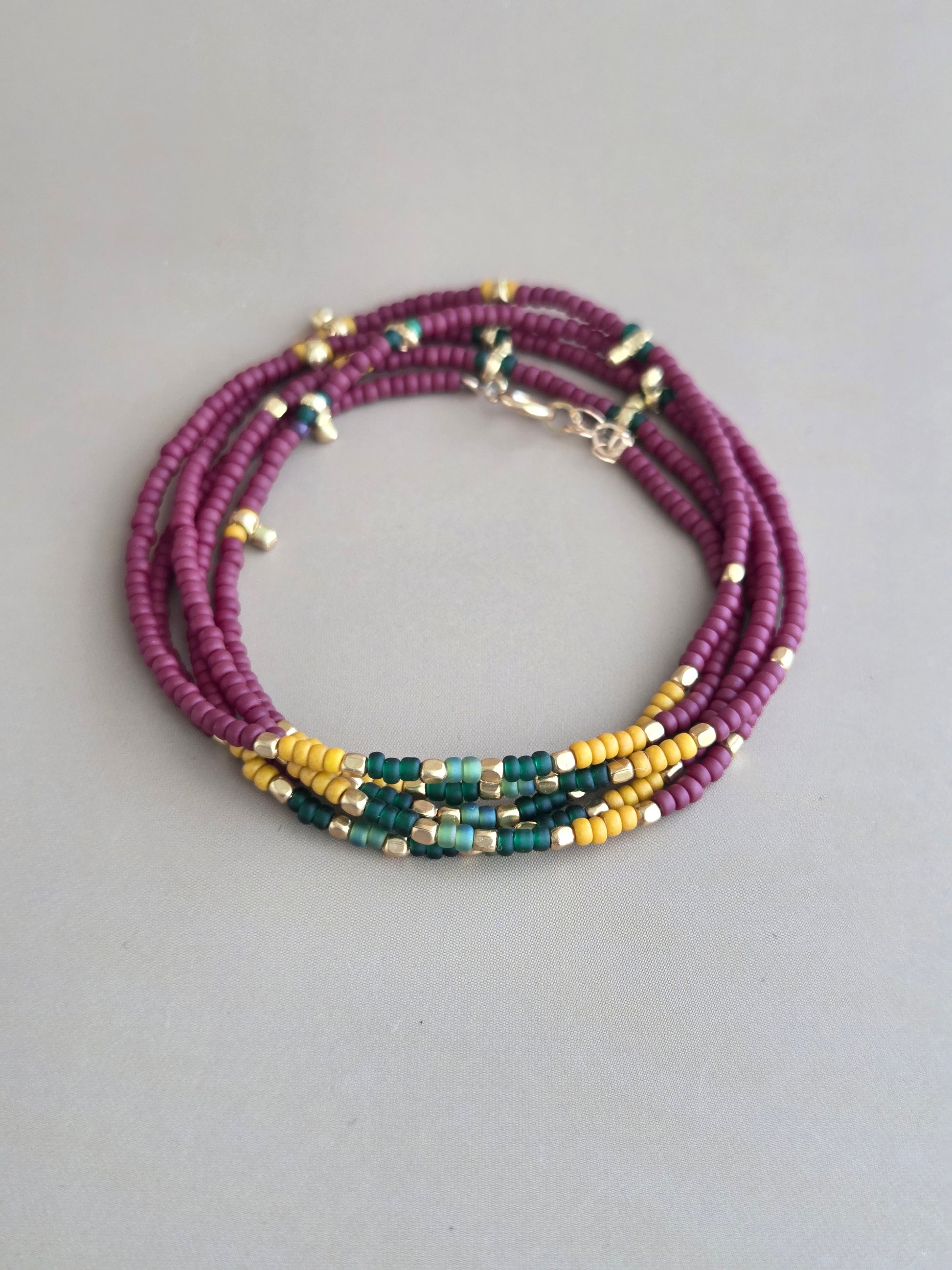 צמיד חרוזים נכרך בבורדו מט, צהוב וירוק