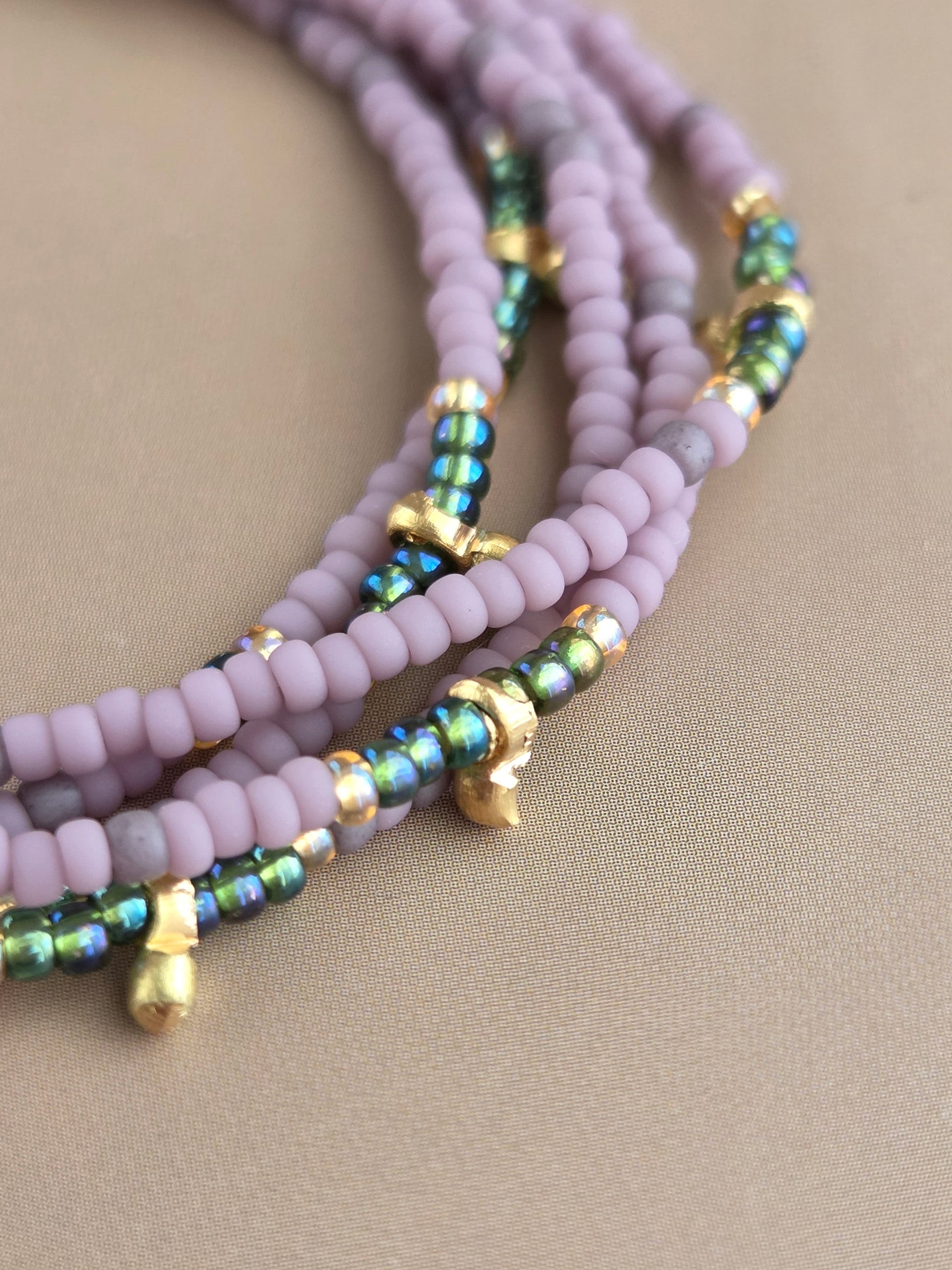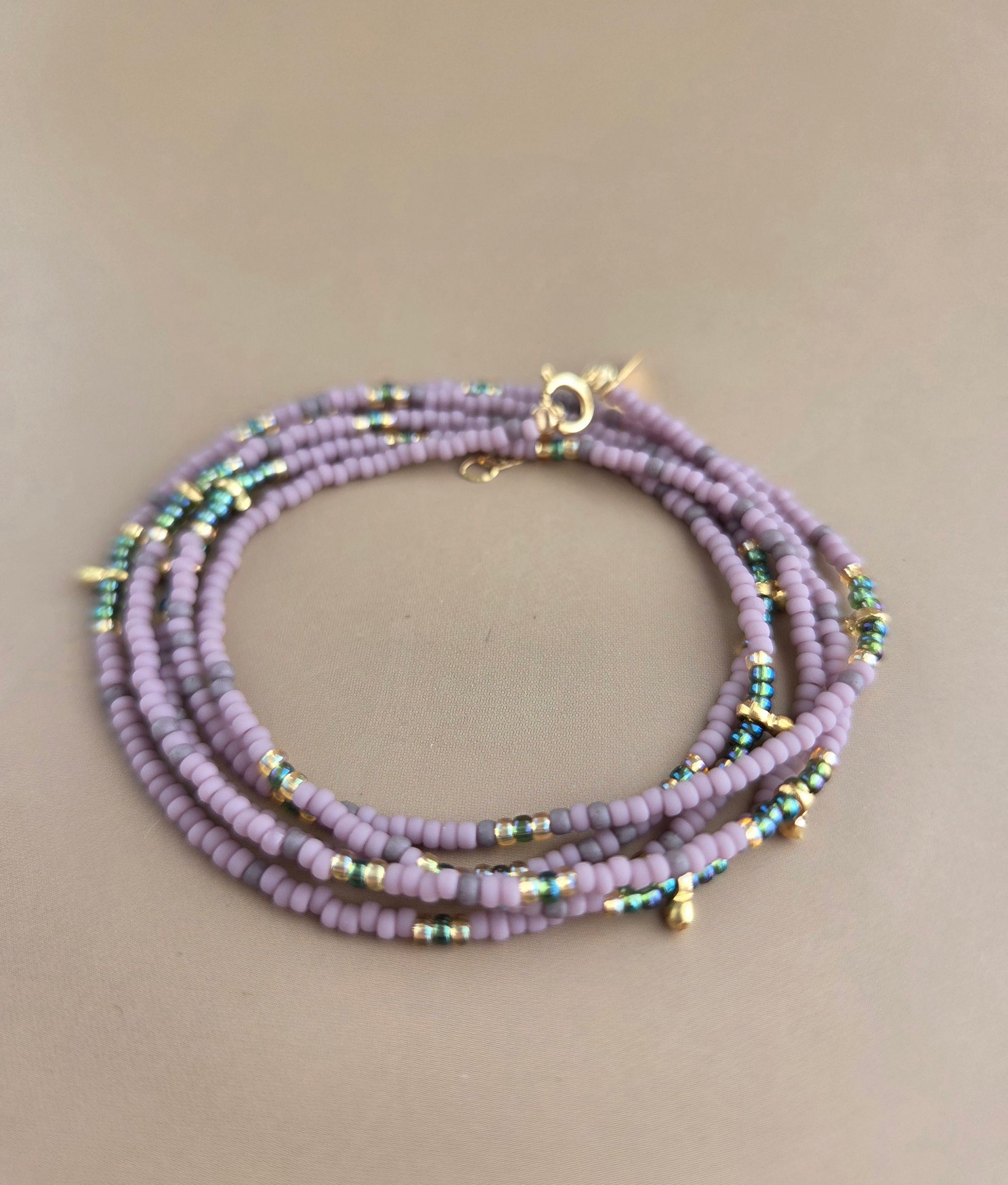 צמיד חרוזים נכרך בסגול מט וירוקים