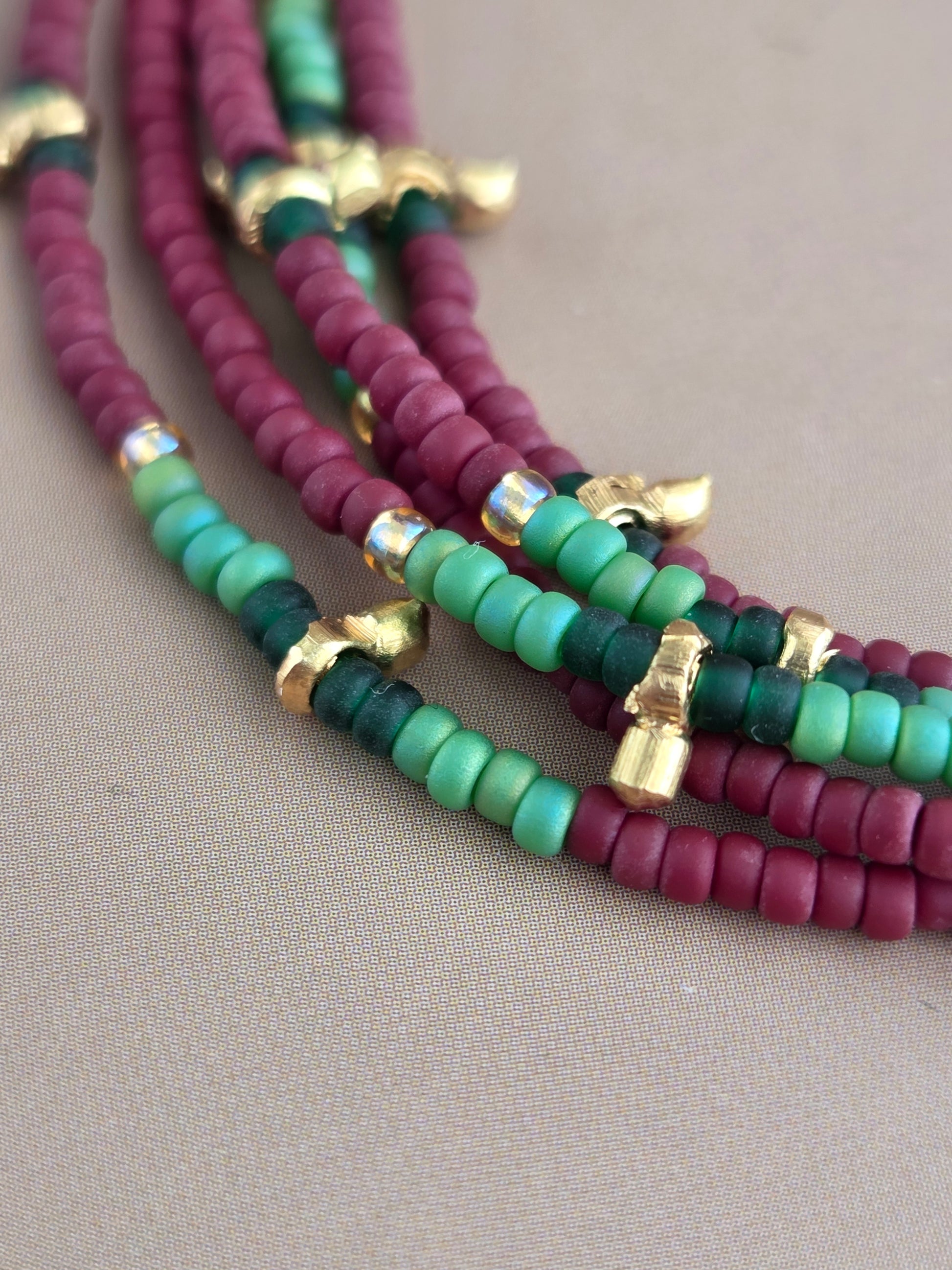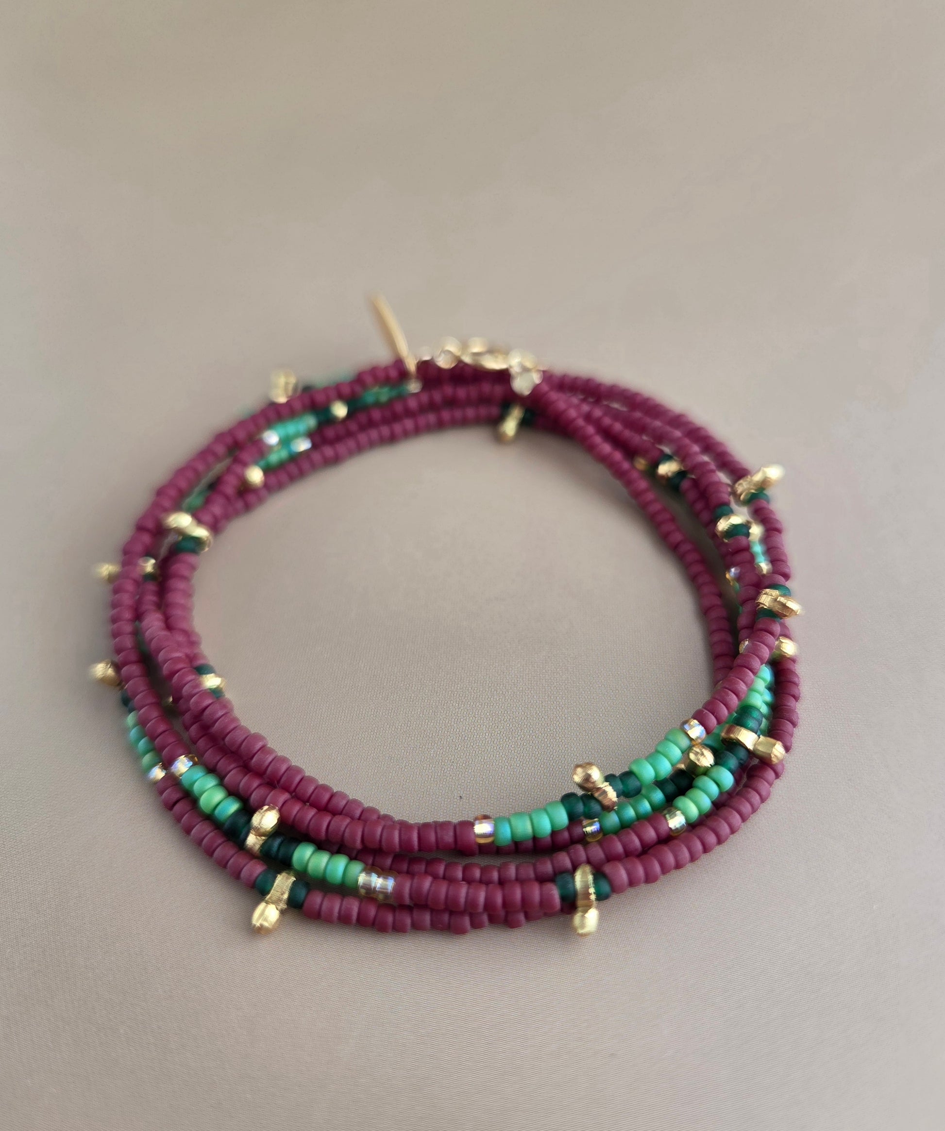 צמיד חרוזים נכרך בבורדו מט וירוקים