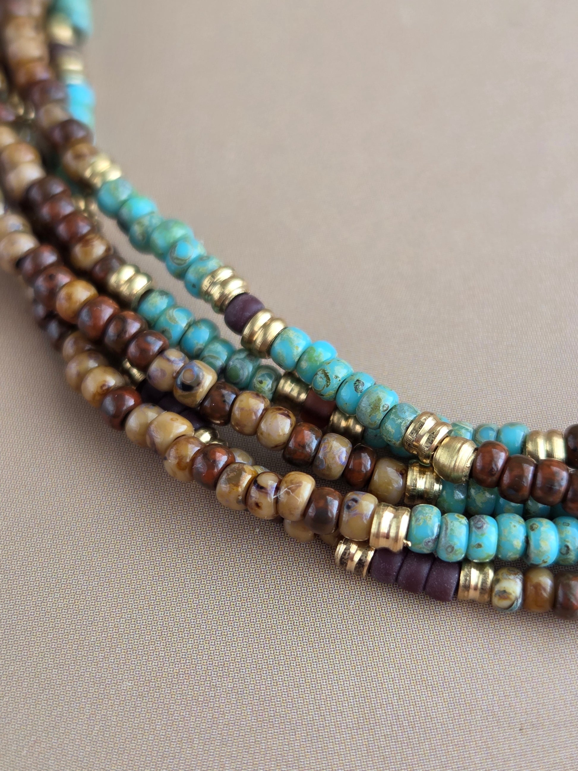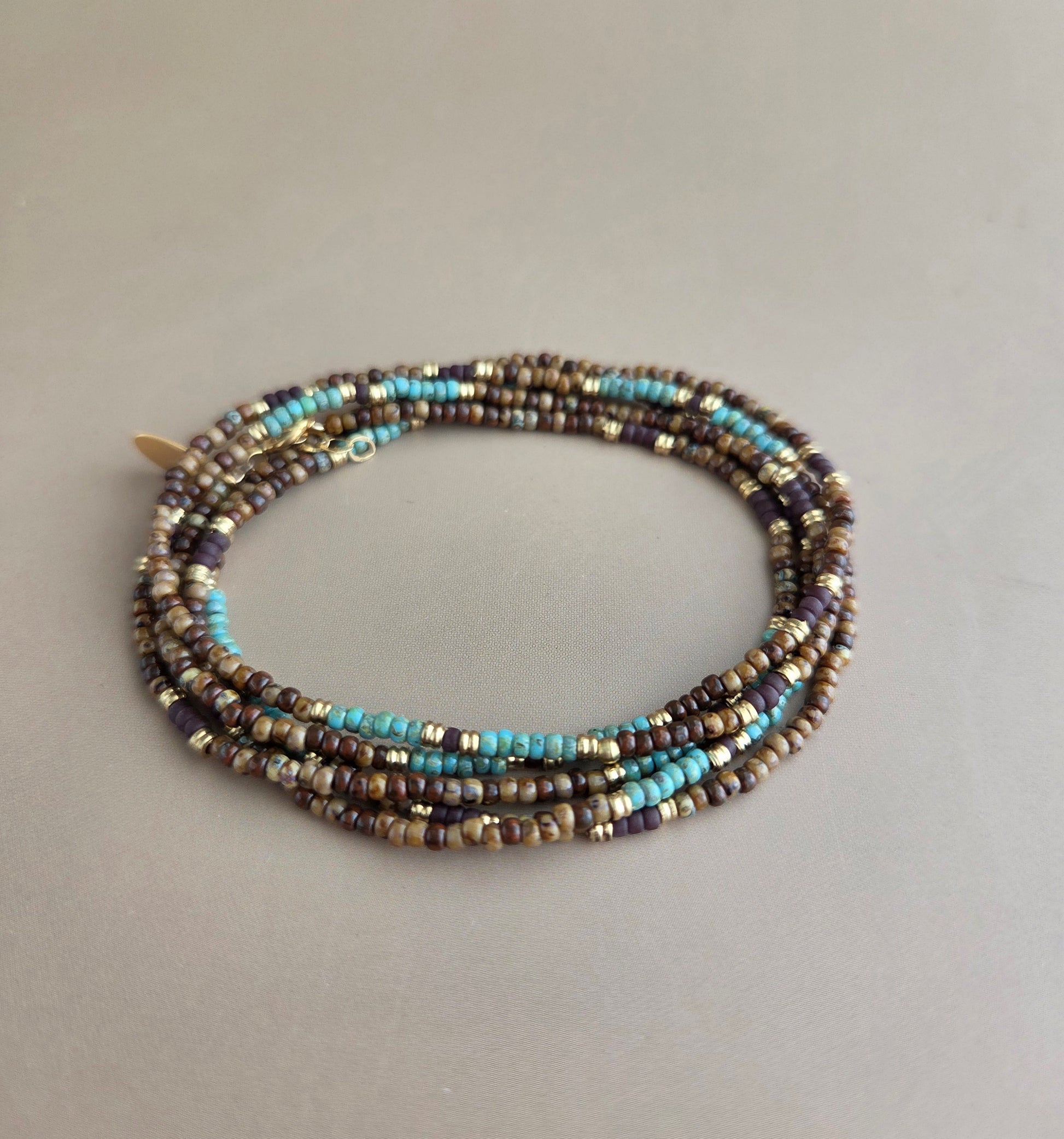 צמיד חרוזים נכרך בחום אדמה וטורקיז