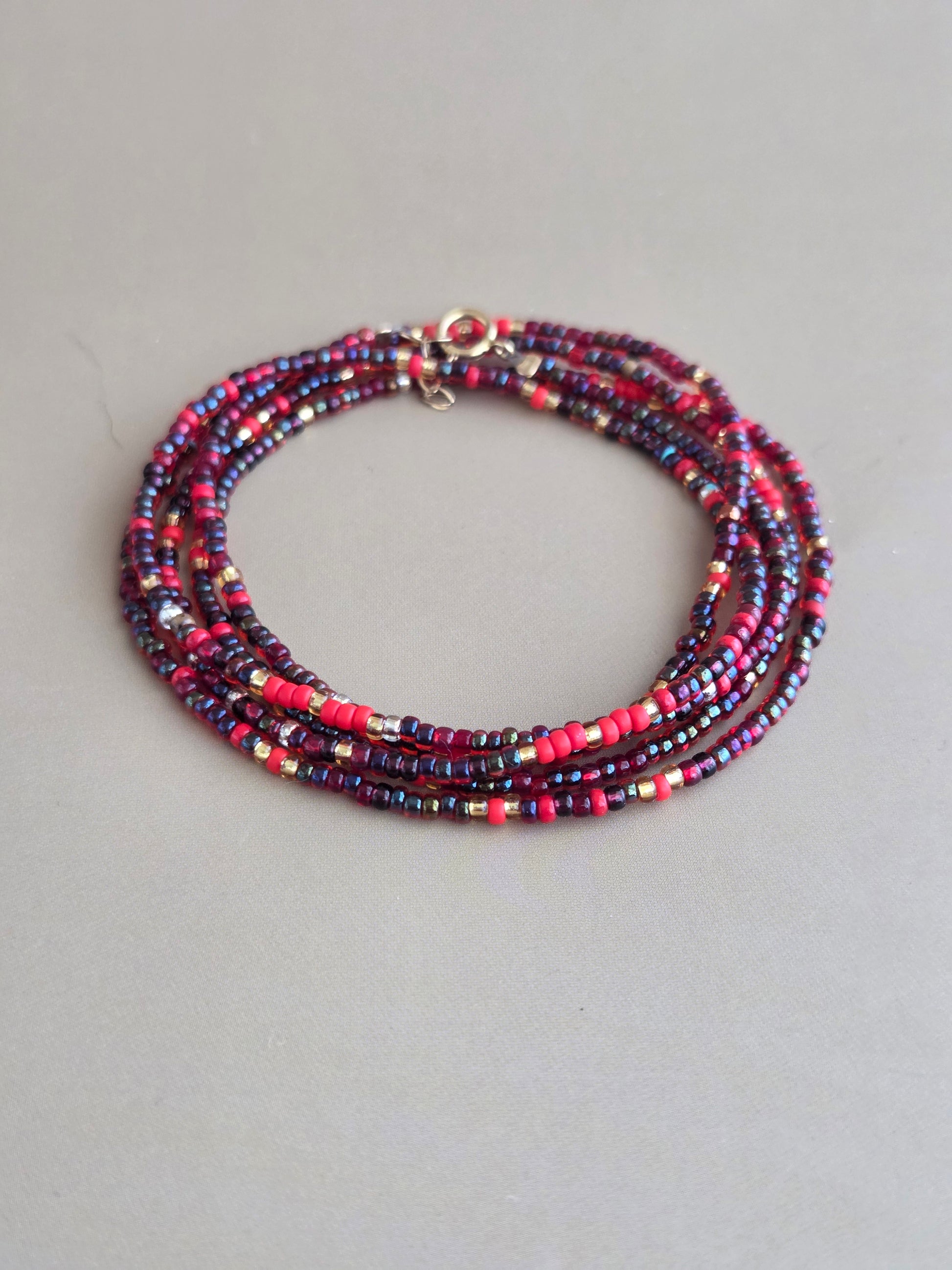 צמיד חרוזים נכרך בבורדו שקוף ואדום