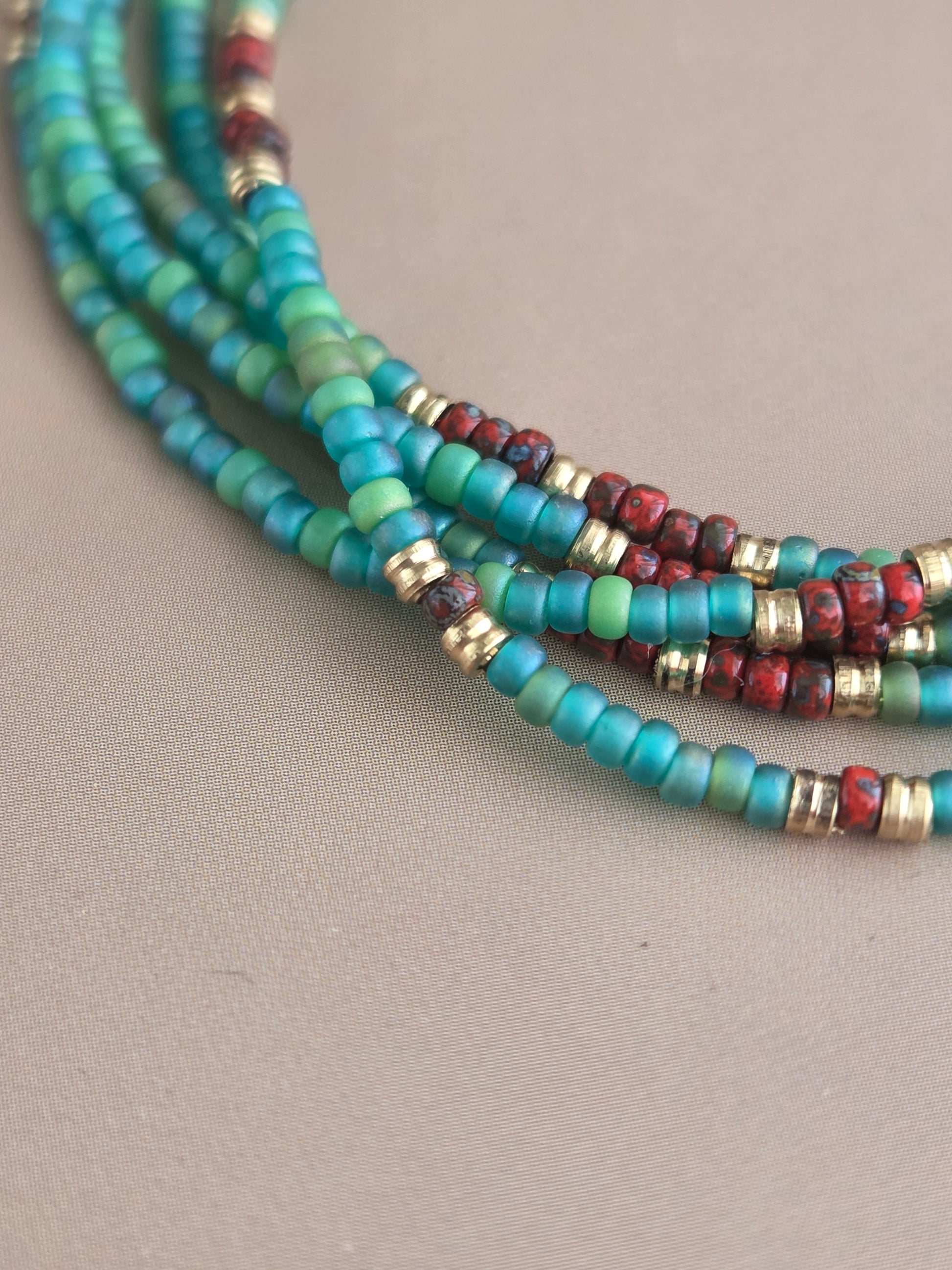 צמיד חרוזים בירוקים ובורדו